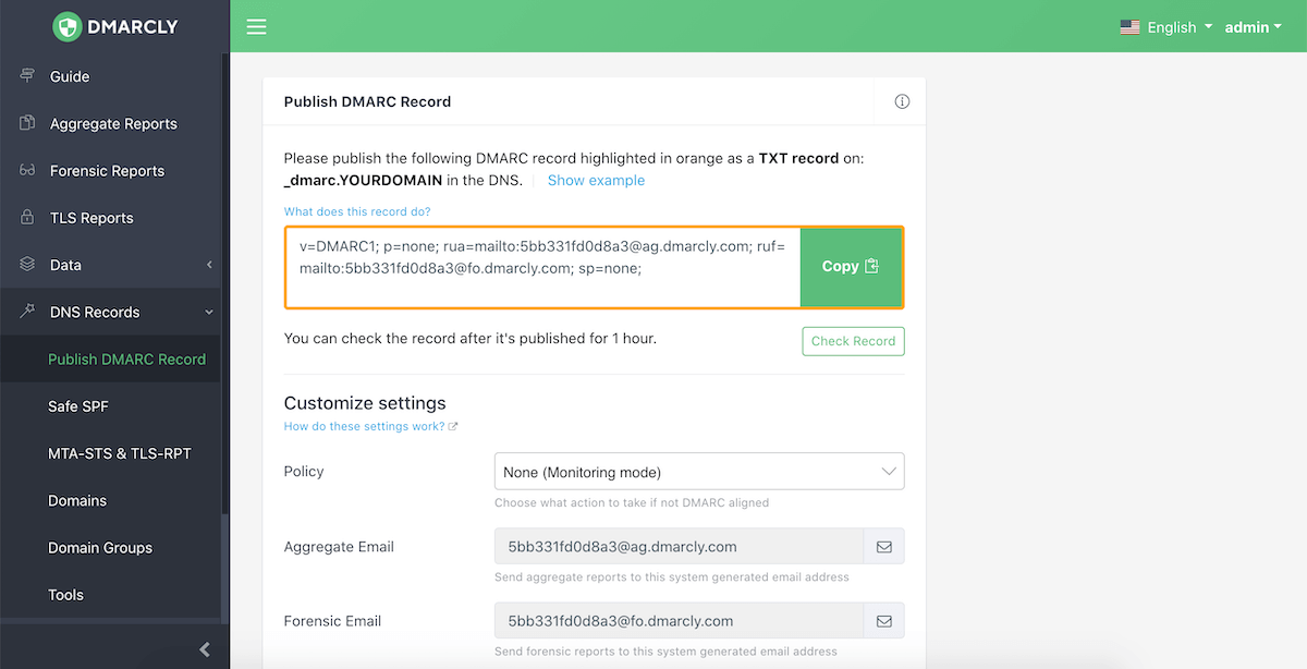 DMARCly feature set